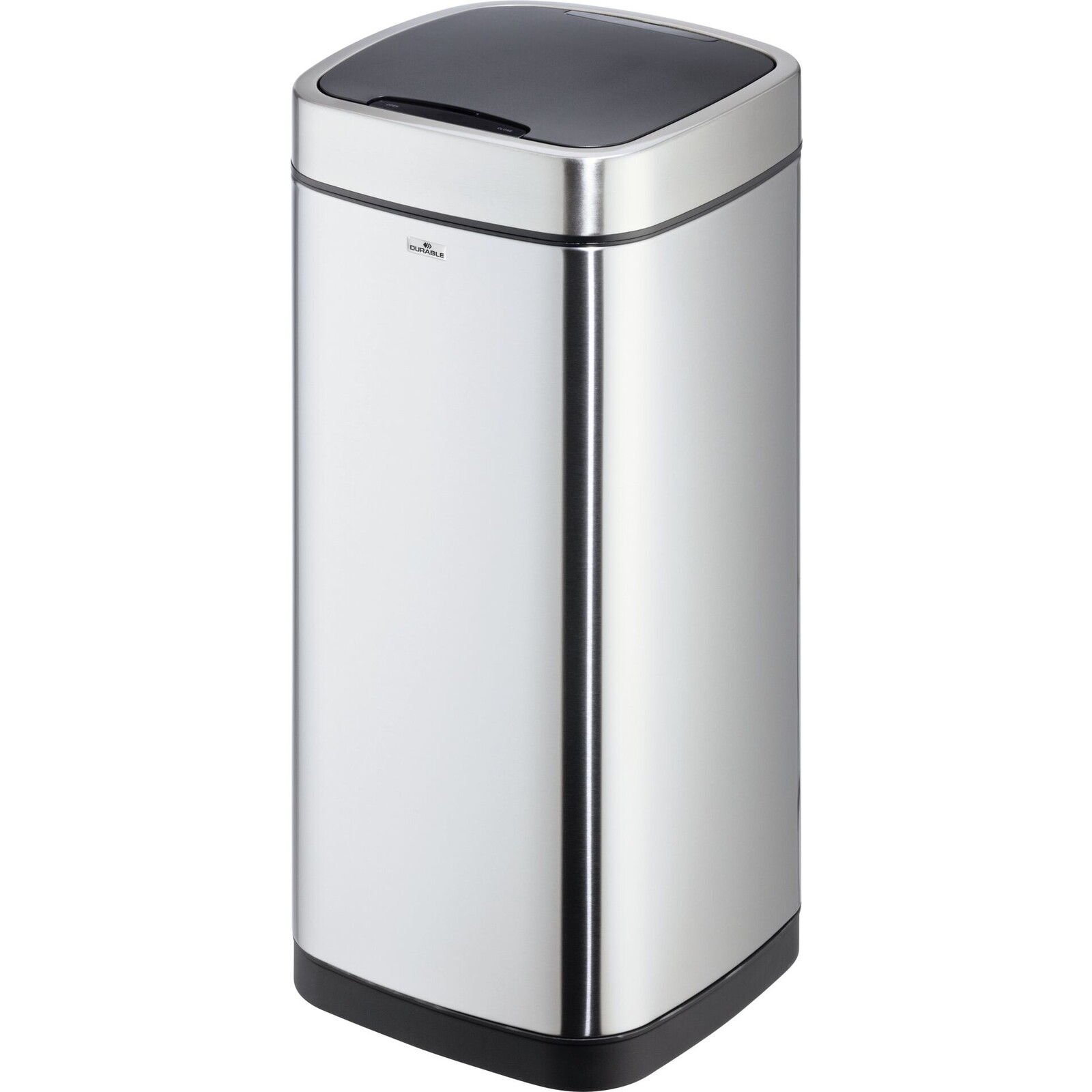 Abfallbehälter zur berührungslosen Bedienung durch Sensortechnik. Öffnet durch Bewegungssensor und schließt automatisch, alternativ auch manuell über Open/Close Tasten bedienbar. Herausnehmbarer Inneneimer mit Henkel und Beutelfixierung. Abnehmbarer Deckel zum einfachen Entleeren / An-Ausschaltknopf. Soft-Close Funktion des Deckels. Trageöffnung an der Rückseite des Abfalleimers. Außenkörper aus Edelstahl mit Fingerprint-Proof Beschichtung. Rutschfester Sockel und viereckige Form zum platzsparenden Aufstellen. Benötigt 4 AA Batterien (nicht enthalten).