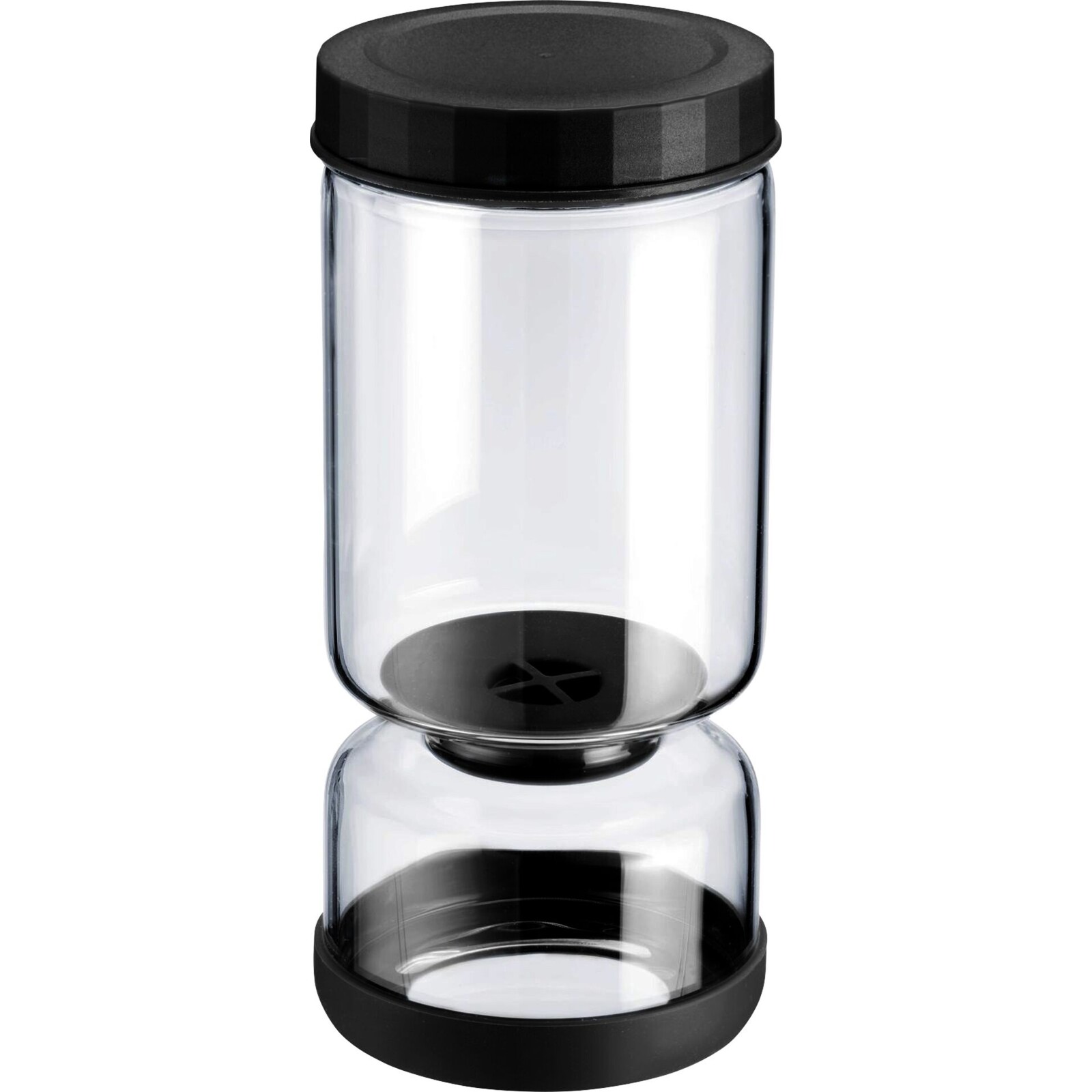 Borosilikatglas, Sieb, Dichtung u. Fuß aus Silikon, Deckel PP. Zwei-Kammer-System. Zum Servieren und Aufbewahren. Auslaufsicher. Sieb herausnehmbar für gründliche Reinigung. Passt in die Kühlschranktür. Spülmaschinengeeignet.