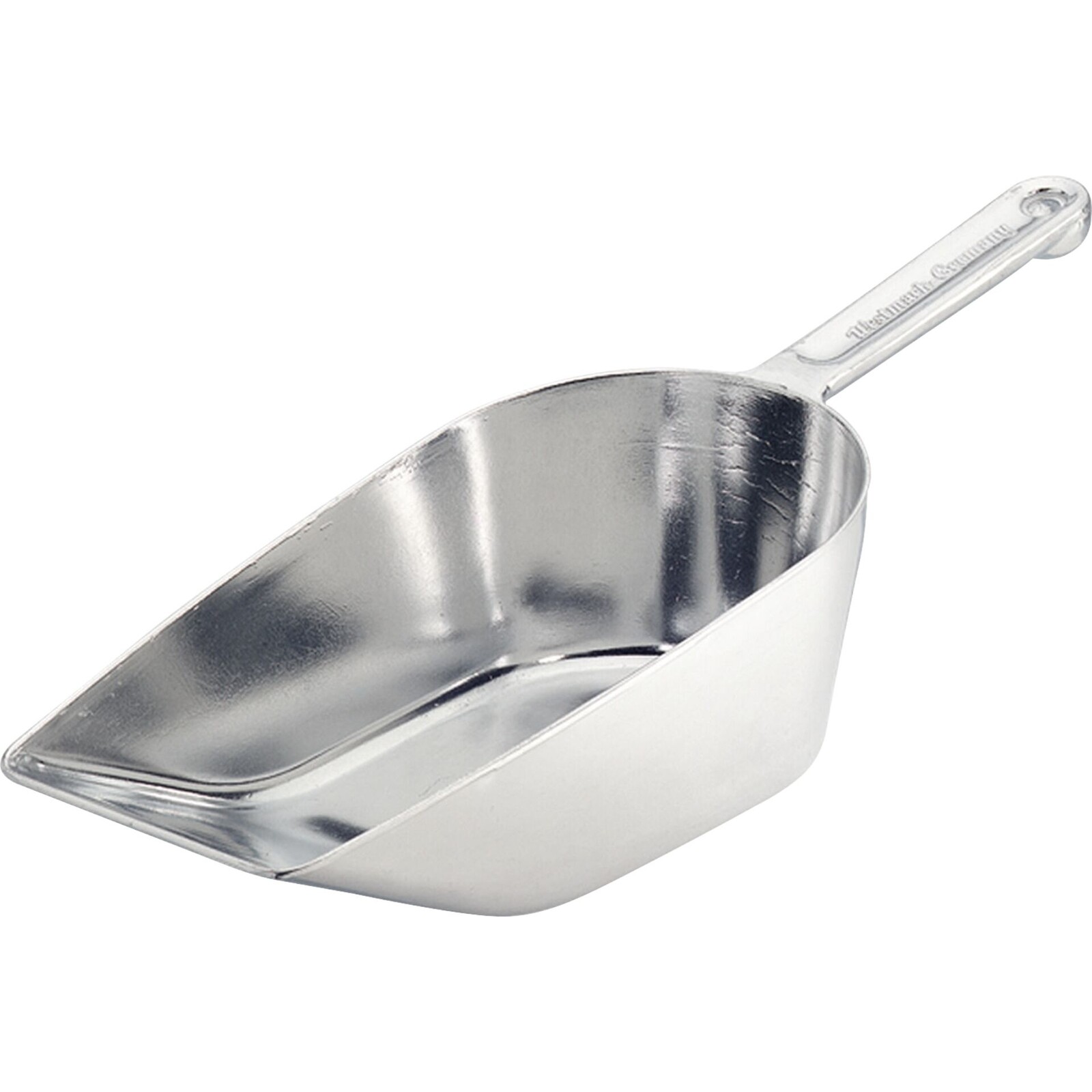 Aluminium, geeignet als Back-, Abwiege oder Abfüllschaufel für trockene, körnige oder stückige Lebensmittel wie Mehl, Zucker, Gewürze etc., im Druckgussverfahren in einem Stück gefertigt, besonders stabil, jeweils mit praktischem Aufhängeloch im Griff, Bitte beachten: Nicht spülmaschinengeeignet - Reinigung per Handwäsche. Nicht für säure- und salzhaltige Lebensmittel geeignet.