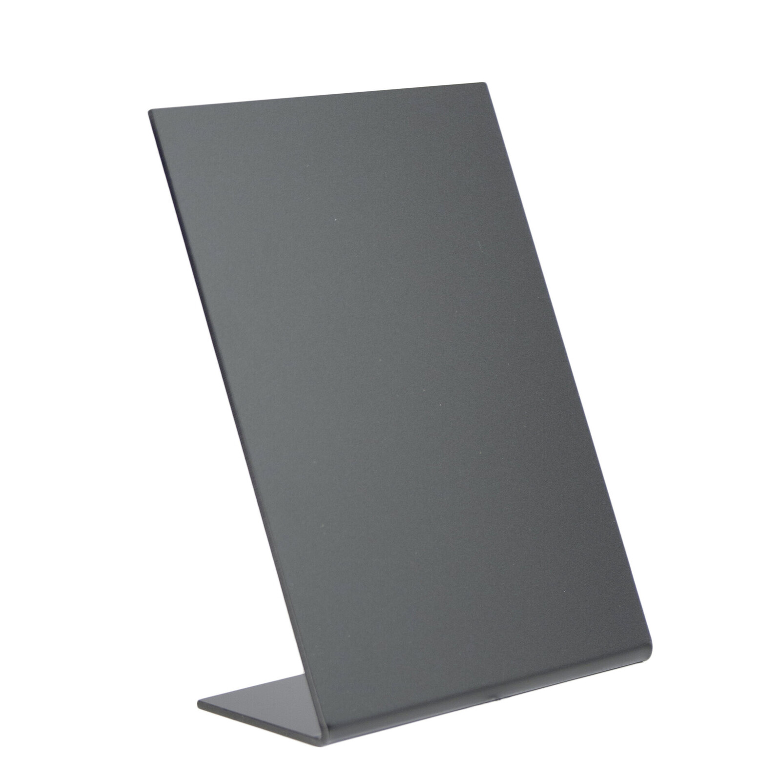 Acryl, schwarz. L-förmig. Vorderseite matt, Rückseite glänzend. Beschriftbar mit unseren Kreidemarkern. Reinigung mittels Schwamm Art.Nr. 160300.