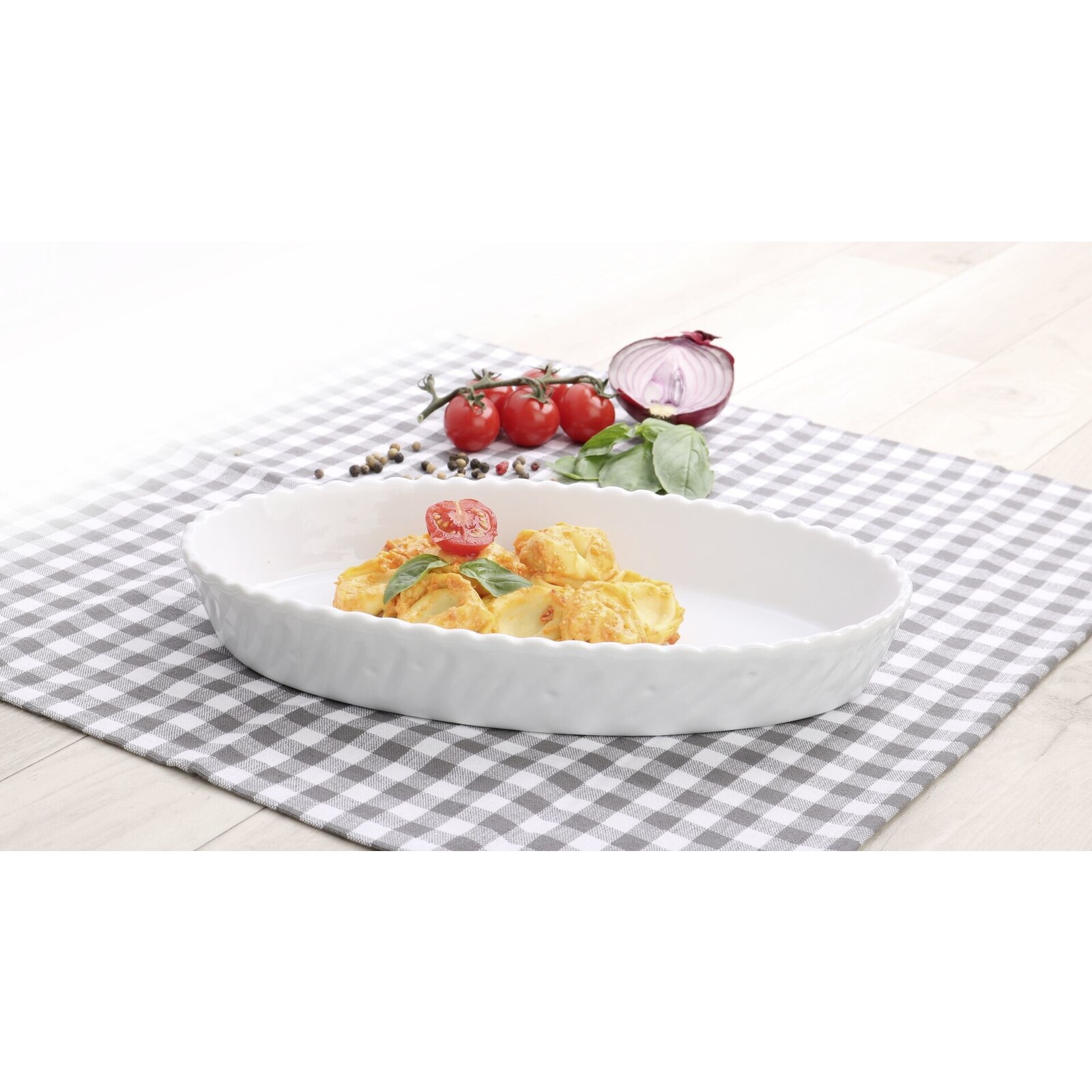 Porzellan, weiß, oval. Feuerfest bis 300°C. Ideal zum Kombinieren mit unseren Bratenplatten aus Edelstahl!