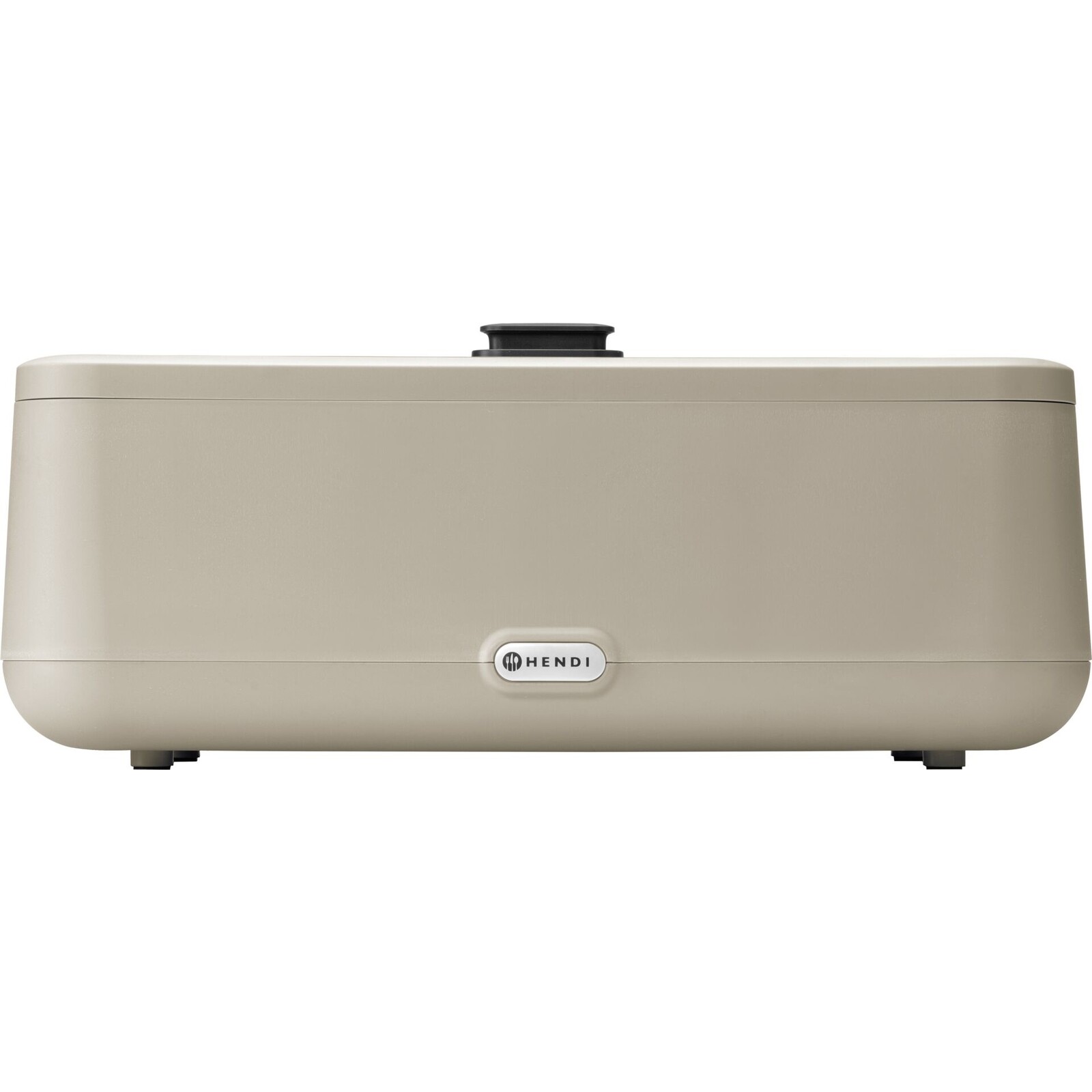Chafing Dish "Uniq". Gehäuse aus PP. Herausnehmbarer GN1/1 Behälter (H:100mm) aus AISI 304 Edelstahl inklusive. Heizelement aus Edelstahl AISI 304, das für eine effiziente Wärmeübertragung in den Wasserbehälter sorgt. Gehärteter Glasdeckel mit isoliertem Griff, Pfannenkerbe und Aluminiumscharnier. Integrierter Kartenhalter am Deckel für die Speisenbezeichnungen. Das empfindliche Wassersensormodul erinnert den Benutzer daran, wann es Zeit ist, den Wasserbehälter nachzufüllen und verhindert so ein Trockensieden. Digitales Bedienfeld mit Anzeige der Gesamtbetriebszeit, der eingestellten Temperatur und der tatsächlichen Temperatur. Die letzte Temperatureinstellung wird im Speicher registriert und jedes Mal ausgewählt, wenn die Stromversorgung eingeschaltet wird. Die Temperatur kann von 35 bis 85°C in Schritten von 1°C eingestellt werden. Maximalfülllinie ±4 Liter. Nicht zum Kochen bestimmt, nur zum Warmhalten.