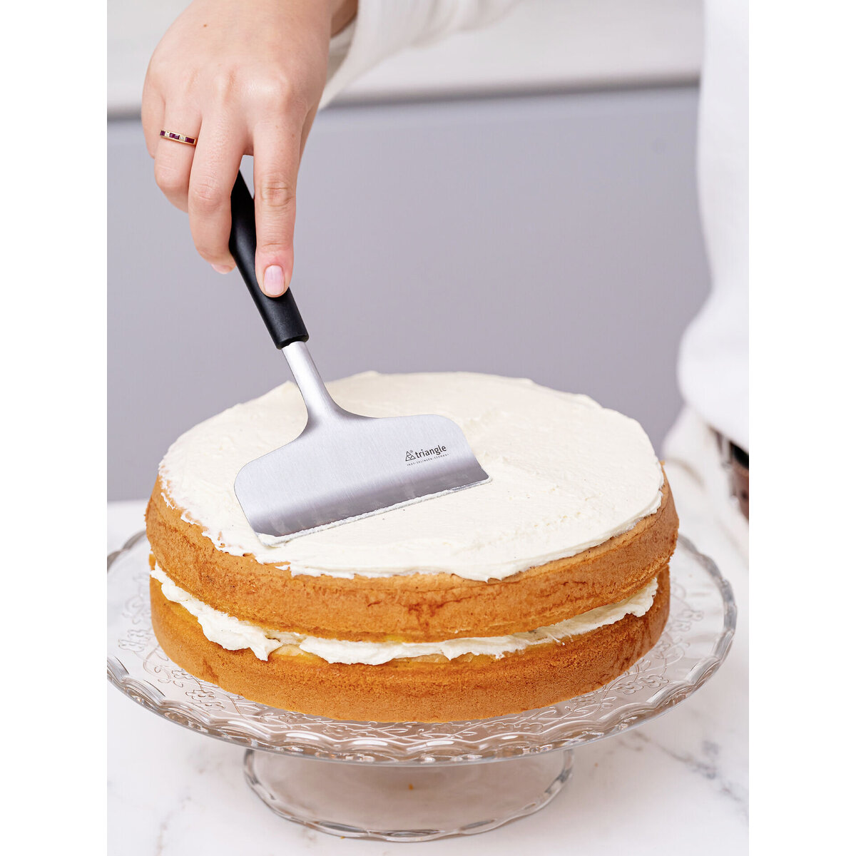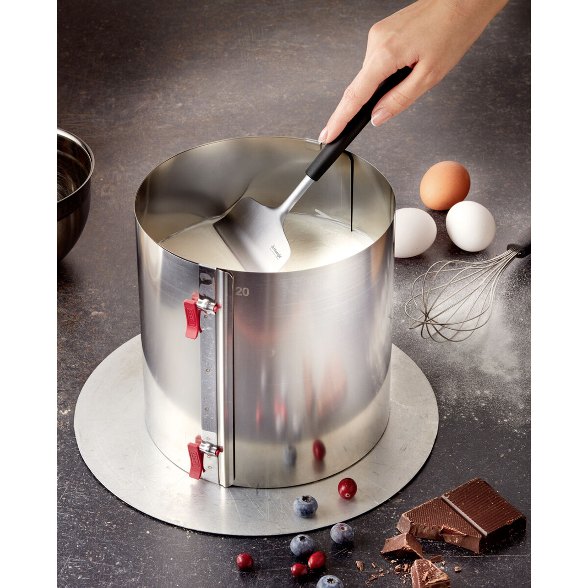Der Cremerakel dient zum Glätten und Verstreichen von Cremes auf Kuchen und Torten. Für eine perfekt ebenmäßige und glatte Oberfläche. Durch den langen Stil ist der Rakel auch hervorragend geeignet für tiefe Tortenringe bis 20 cm Höhe. Rostfreier Stahl. Lebensmittelecht und spülmaschinengeeignet. Made in Germany.