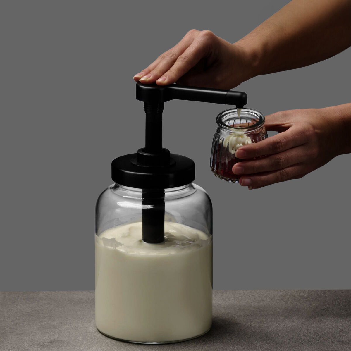 Glas, PP. Hubvolumen: 15 ml. Ideal für Marmelade (ohne Fruchtstücke), Joghurt und Saucen.