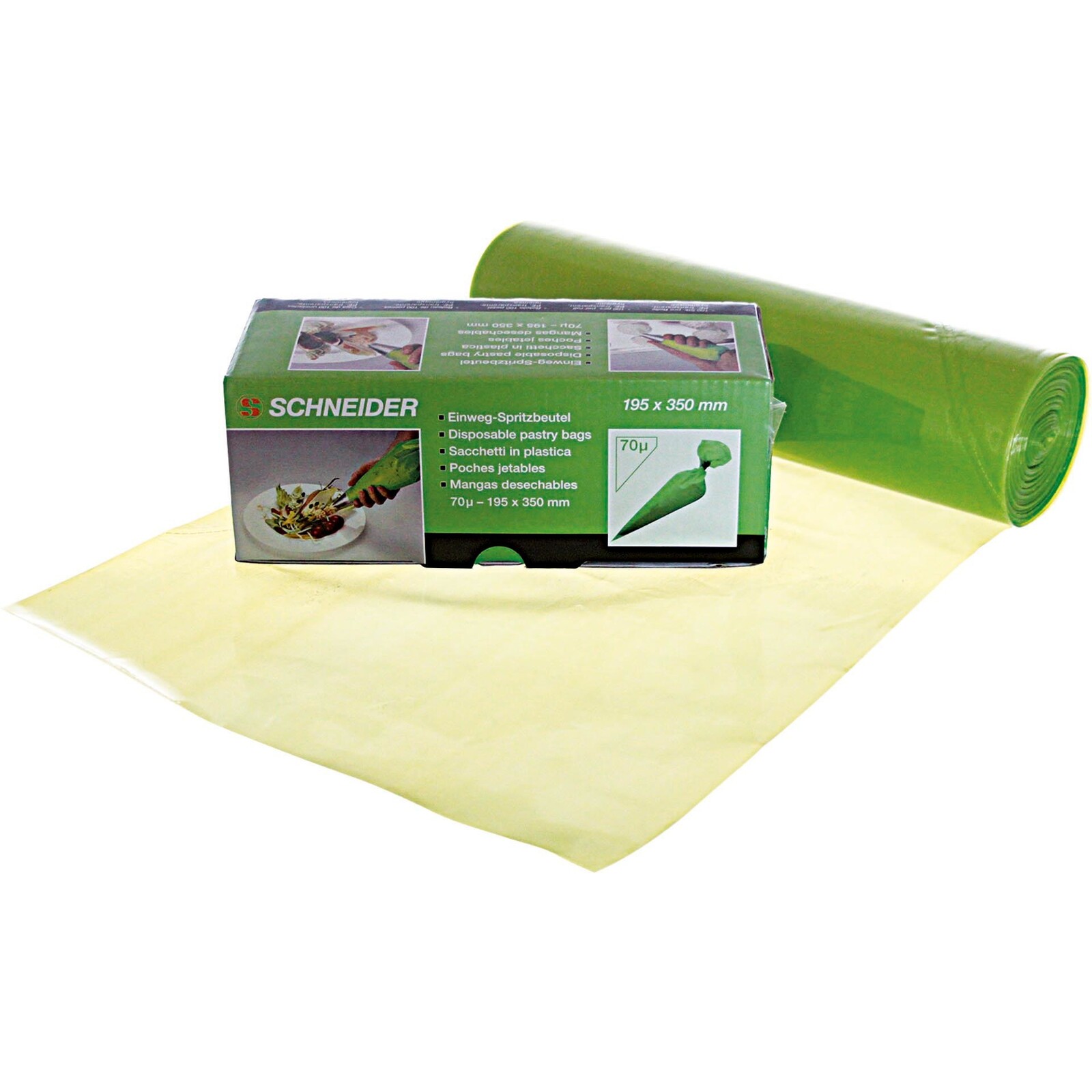 Polyethylen, grün. 70 my. Geschlossene Spitze. Für Lebensmittel im Temperaturbereich von 40°C, Dauer 24 Std. Im 100er Pack.