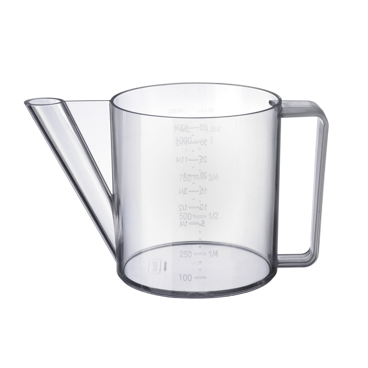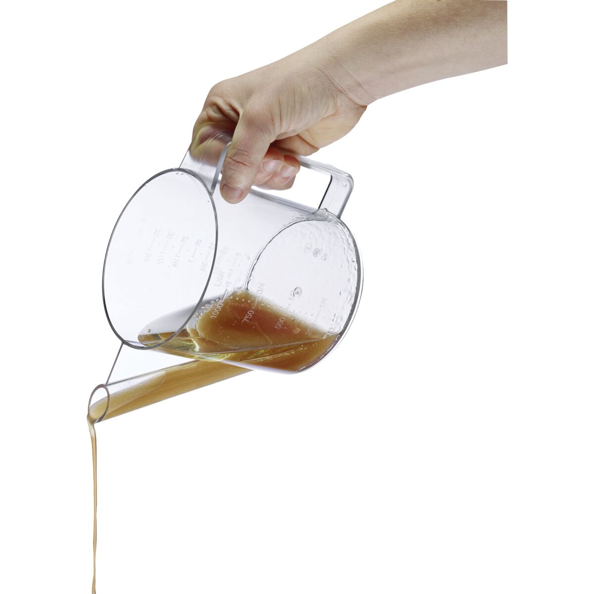 SAN. BPA FREE. Trennt Fett von Bratsäften oder Saucen. Mit Skala für das Abmessen von bis zu 1000 ml.