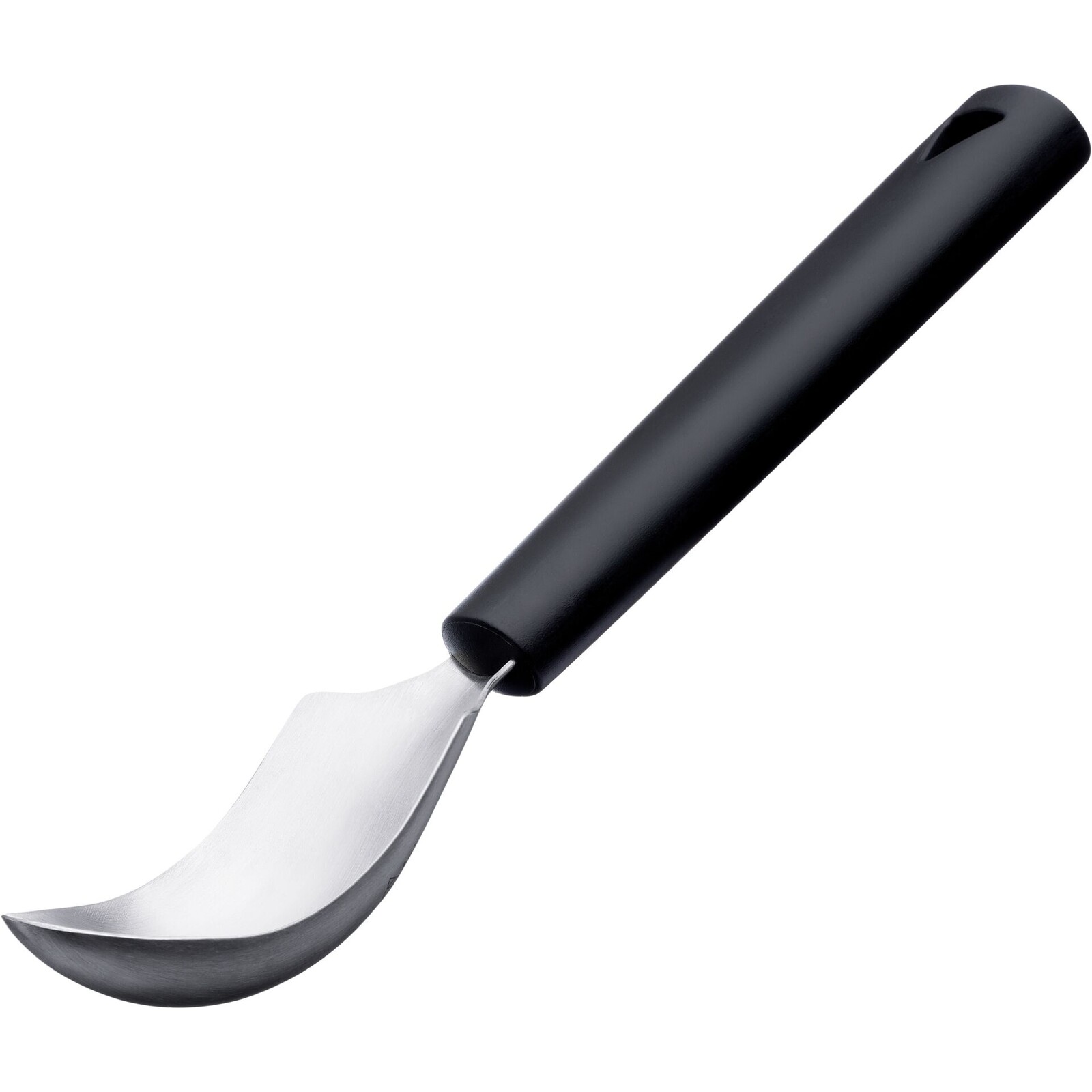 Der Fruchtlöffel ist ein echter Allrounder. Er höhlt schnell und einfach Melonen, Zucchini, Auberginen oder Kürbisse aus. Dank seiner geschärften Kanten und der halbrunden Form gleitet er leicht durch das Fruchtfleisch, verhindert aber ein unbeabsichtigtes Durchstoßen der Fruchtschale. Darüber hinaus lässt er sich auch als Eislöffel und für vieles mehr einsetzen. Rostfrei und spülmaschinengeeignet.