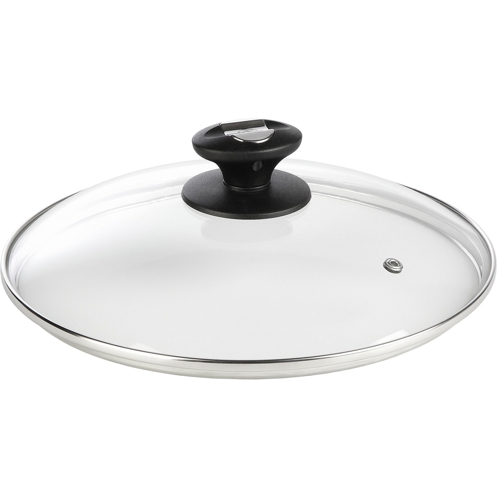 Thermisches Spezialglas, hitzebeständig. Schutzring aus Chromnickelstahl 18/10. Mit Dampfloch.