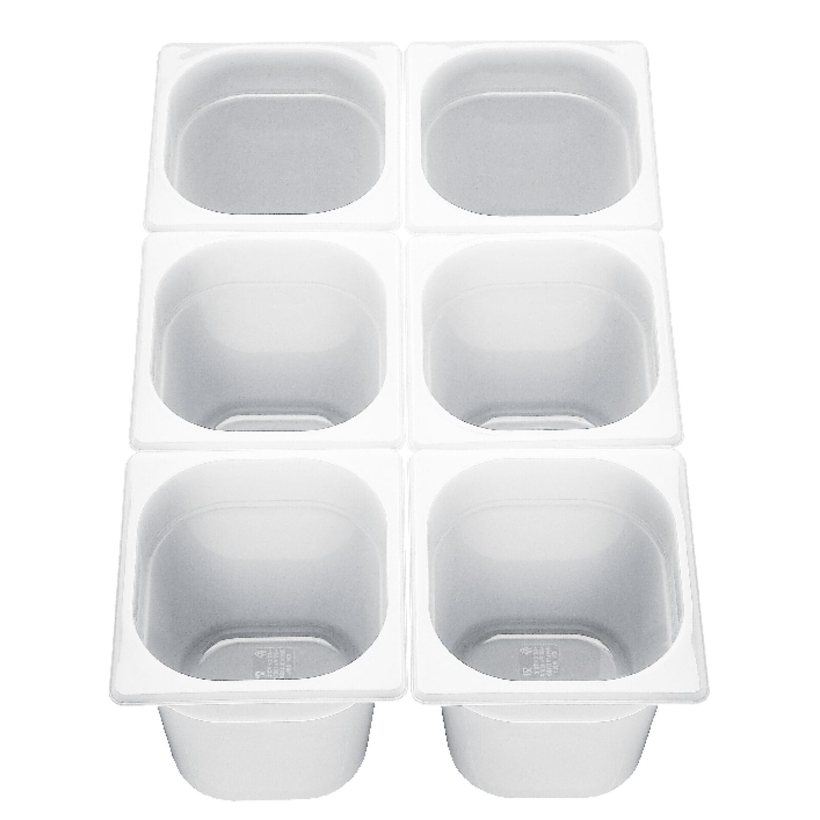 Polypropylen, einsetzbar von -40°C bis +70°C, spülmaschinen- und mikrowellengeeignet.