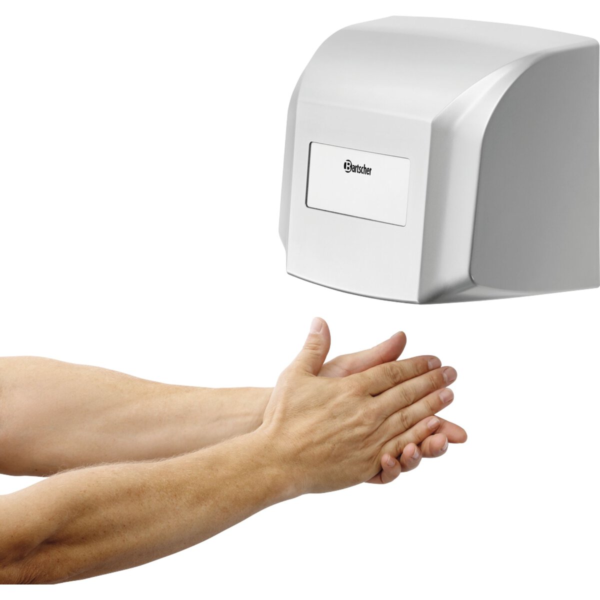 Material Kunststoff grau, Start/Stop-Automatik über Infrarot-Sensor, Stop-Automatik beim Entfernen der Hände, Luftleistung: 31,67 Liter/Sek. Lufttemperatur: ca. 80°C, Trockenzeit max.: ca. 60 Sek., hochleistungsstarke Luftdüse, Ein/Ausschalter, Wandmontage (inkl. Befestigungsmaterial).