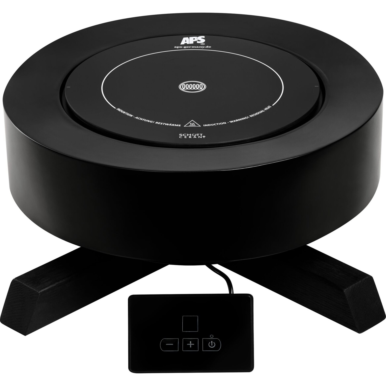 Induktionskochplatte Ø 24 cm, 900 Watt mit Regler. Ständer aus Metall und Eschenholz, schwarz. Mit Antirutschfüßen.