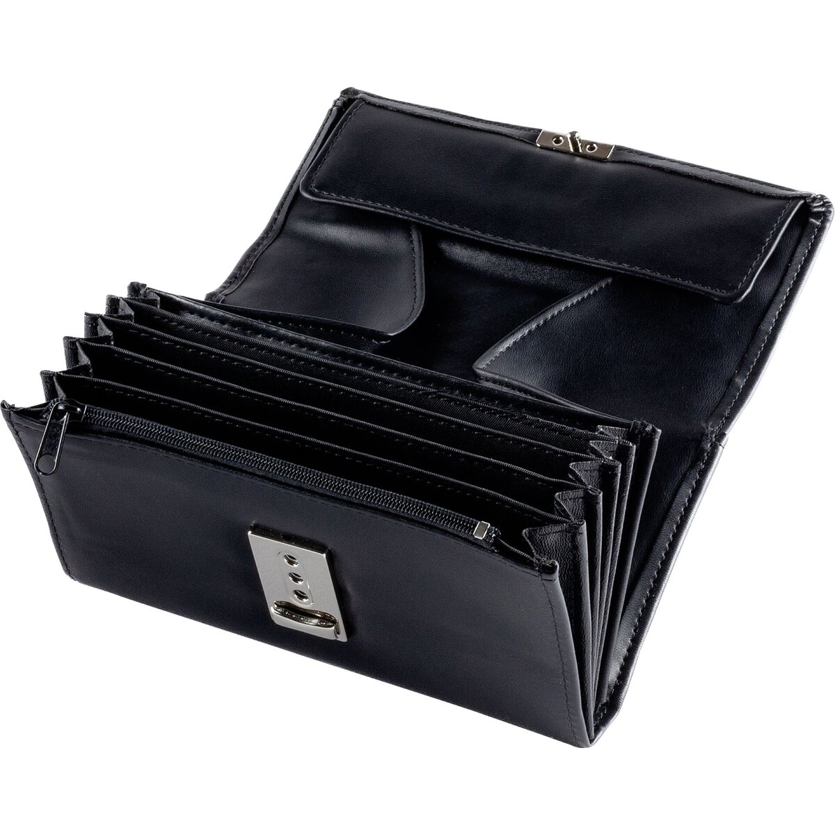 Polyurethan-Kunstleder (PU-Kunstleder), OHNE ÖSE u. OHNE SCHLÜSSELKETTE. Besteht aus: 1x Münzfach, 7x Scheinfach, 1x Reißverschlussfach, 1x Steckfach an der Rückseite.