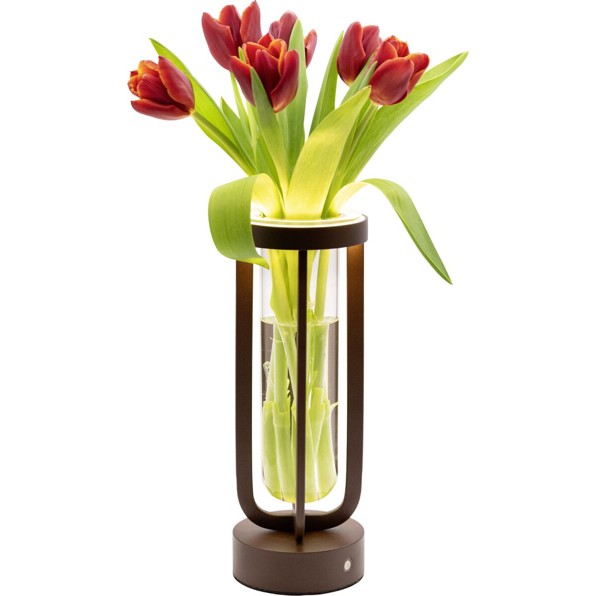 Beleuchtete Tischvase für Blumen und Dekoration. Tischleuchte mit integr. LED und Akku, bronze. Stufenlos dimmbar. Wasserdicht nach IP54. Inkl. magnetischem USB Schnellladekabel. Lichttemperatur: 2700K.