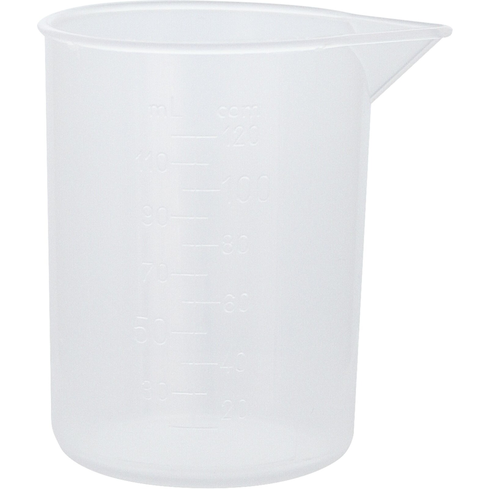 Polypropylen, transparent. Ohne Griff. Mit geprägter Skala. Bis 95°C erhitzbar.