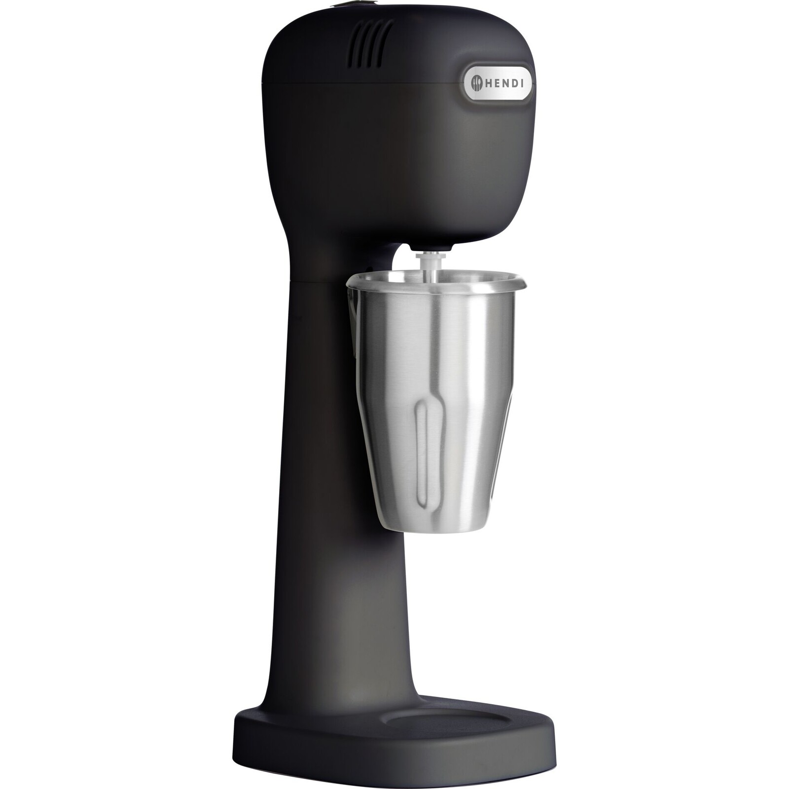 Milchshake-Mixer mit schwarzem ABS-Gehäuse und Edelstahl Becher. Geschwindigkeitsstufen: 15.000/19.000 U/Min. Beinhaltet 1x Mixer, 4x verschiedene Rührwerke, 1x Becher (Edelstahl), 1x Becher (PC). Becher und Rührwerke sind spülmaschinengeeignet. Analoge Bedienung. Mit Gummifüßen.