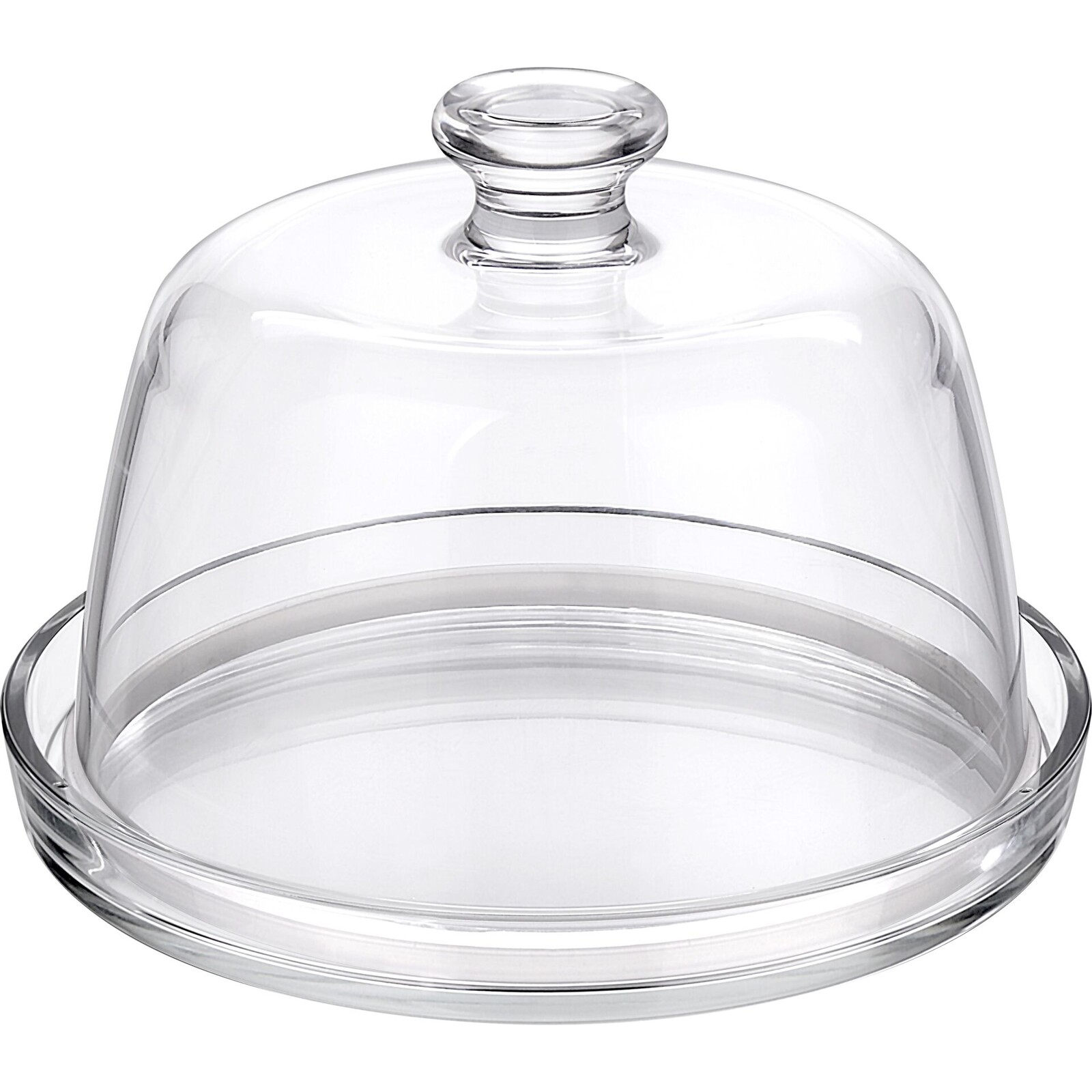Glas. Bestehend aus Platte Ø 22cm und Cloche Ø 19,4 cm (inkl. Ring) im Geschenkkarton.