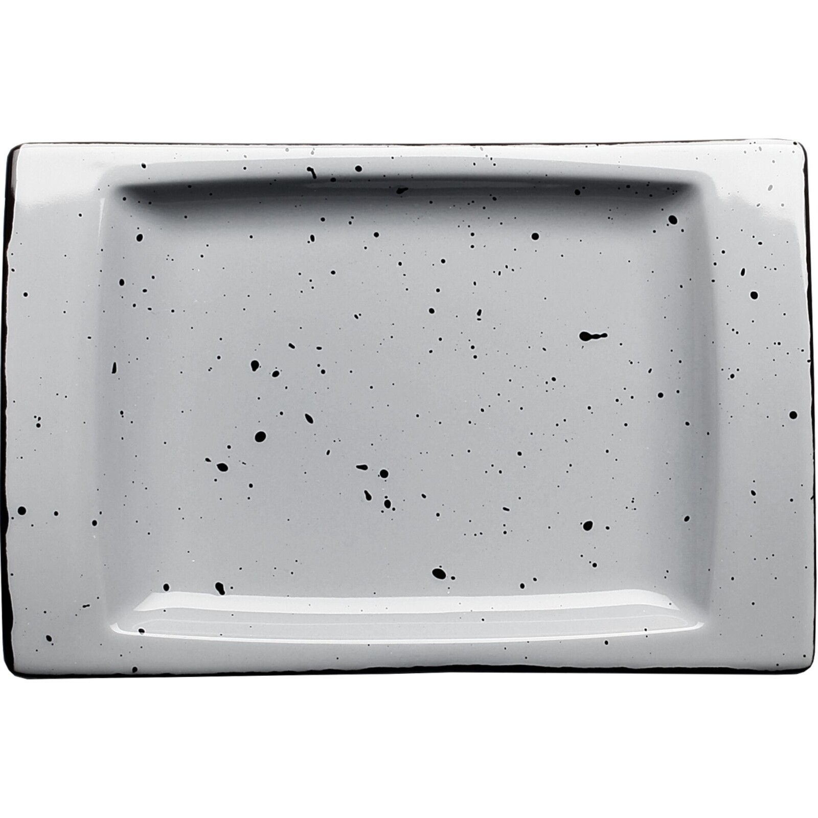 Porzellan. Grundfarbe grau (Farbverlauf bewusst unregelmäßig), Rand braun und Spiegel braun gesprenkelt. Mischsortierung. Spülmaschinengeeignet.