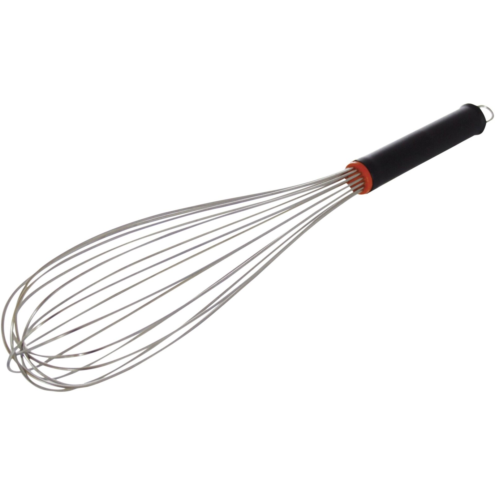 Rührbesen mit 16 Edelstahl-Drähten und schwarzem, thermoplastischen Griff mit Aufhängeöse. Hitzebeständig bis 200°C. Spülmaschinengeeignet!