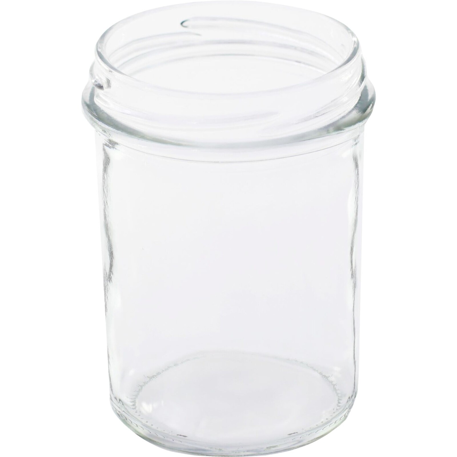 Glas. Mit schwarz-weiß kariertem Deckel.