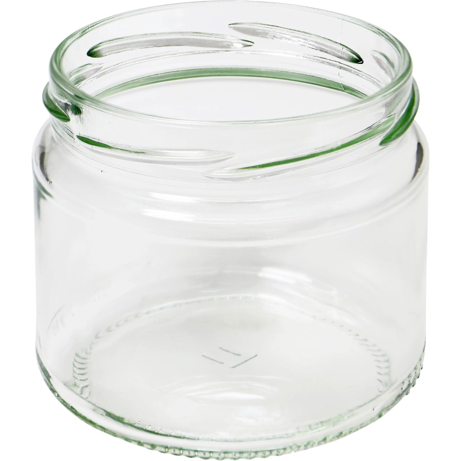 Glas. Mit schwarz-weiß kariertem Deckel.