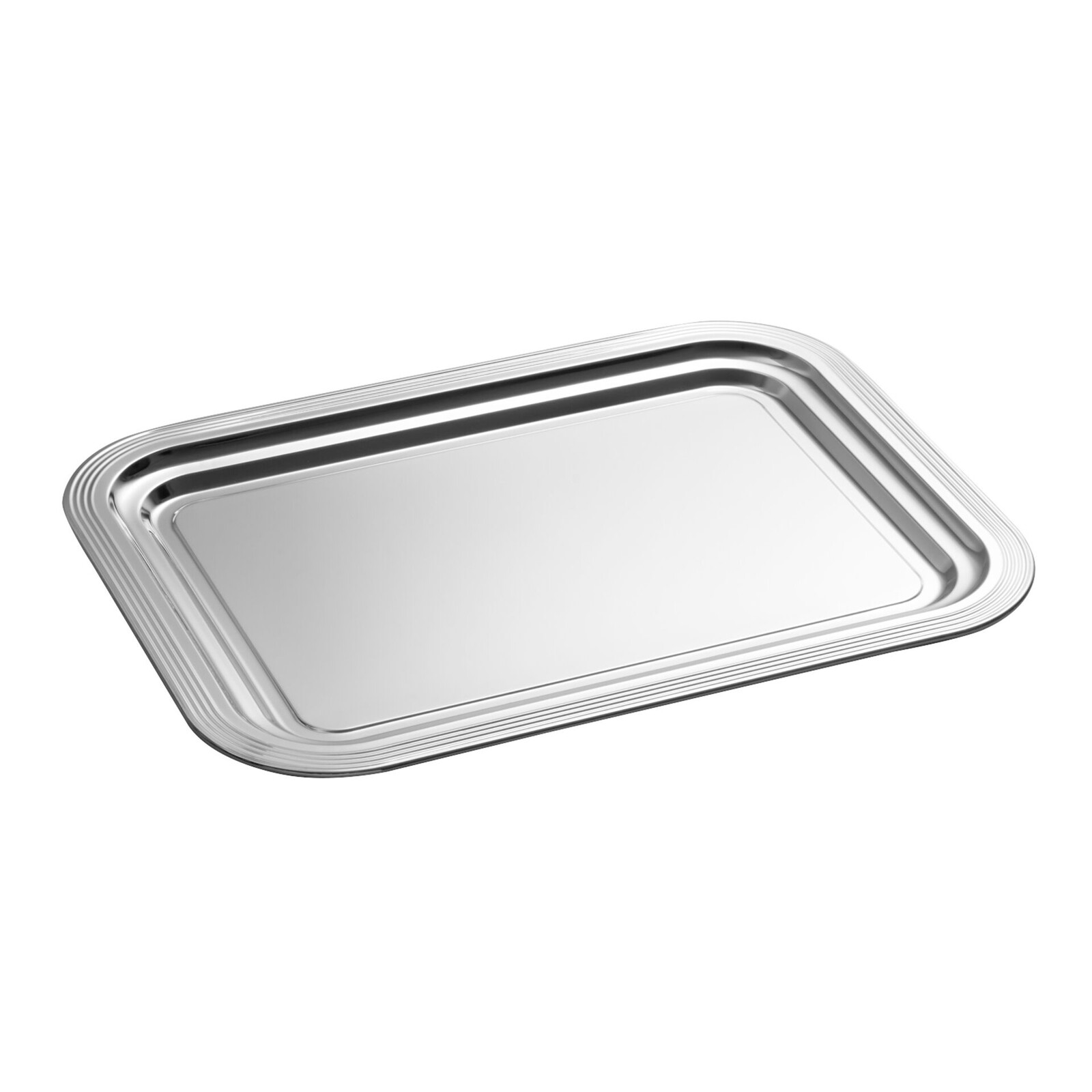 Vernickelt und glanzverchromt. Mit Liniendekor. Rand eingerollt.
