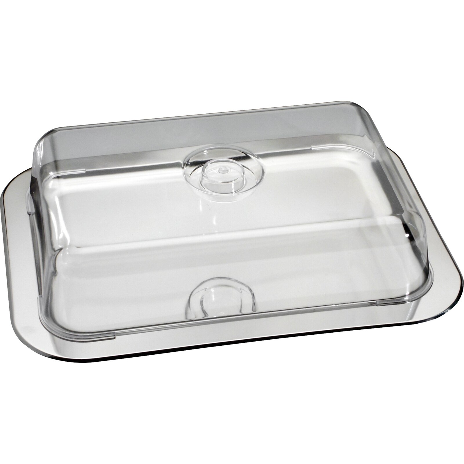 Platte aus rostfreiem Edelstahl (Spülmaschinengeeignet), Haube aus Polystryol. Lebensmittelecht. 2-tlg.
